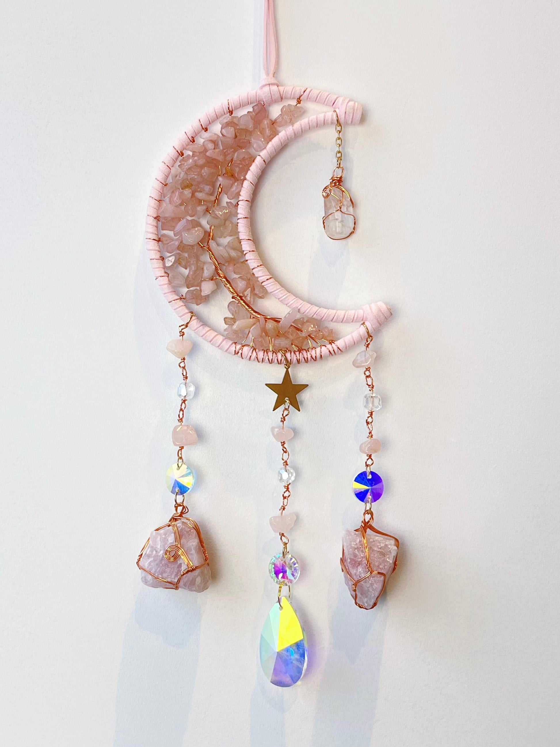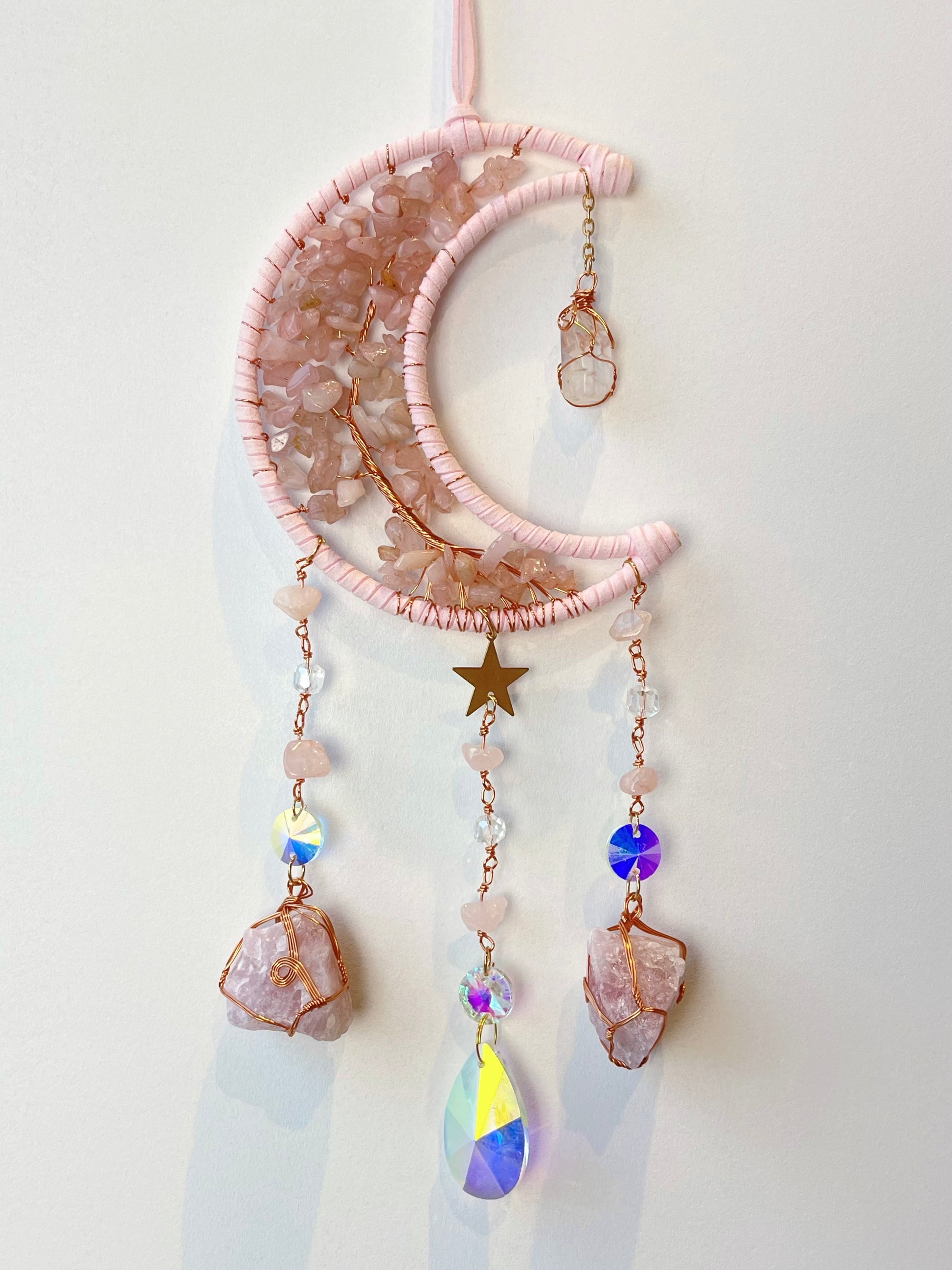 Består av Rosenkvarts, messing og glass.