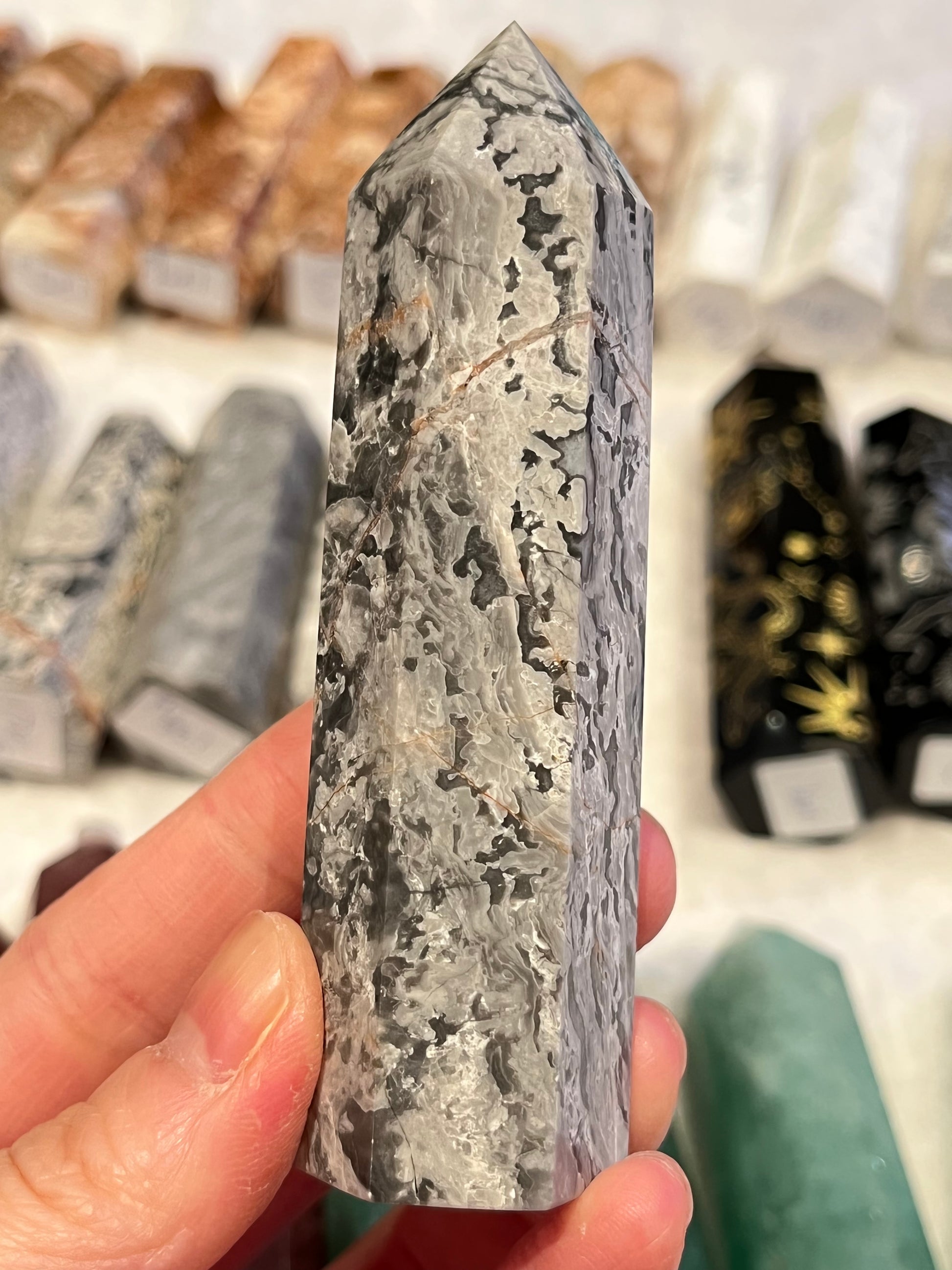 Note: Naturlige edelstener er naturens skapelse, den er unik og annerledes, hver stein har sine egne linjer, krumninger, mønster og fargeintensitet. Derfor håper vi at du kan tolerere enhver ujevnhet i steinene.