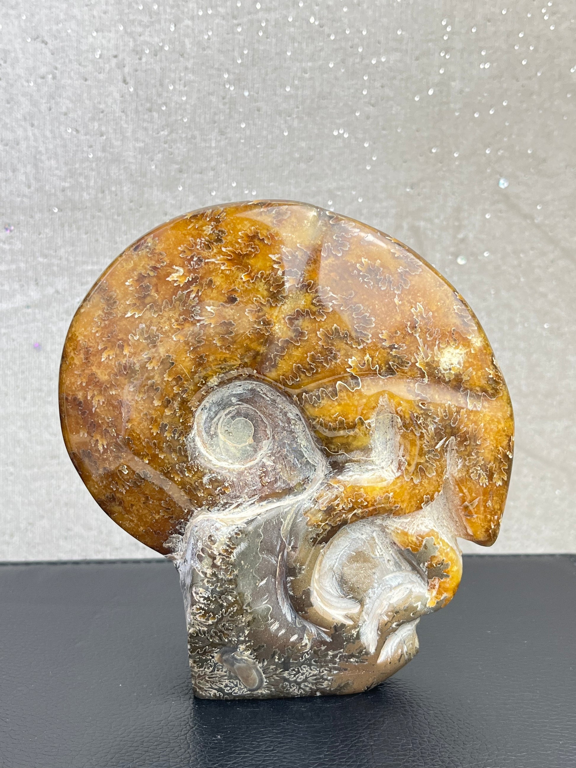 *Naturlig ammonitt, polert og håndskåret.