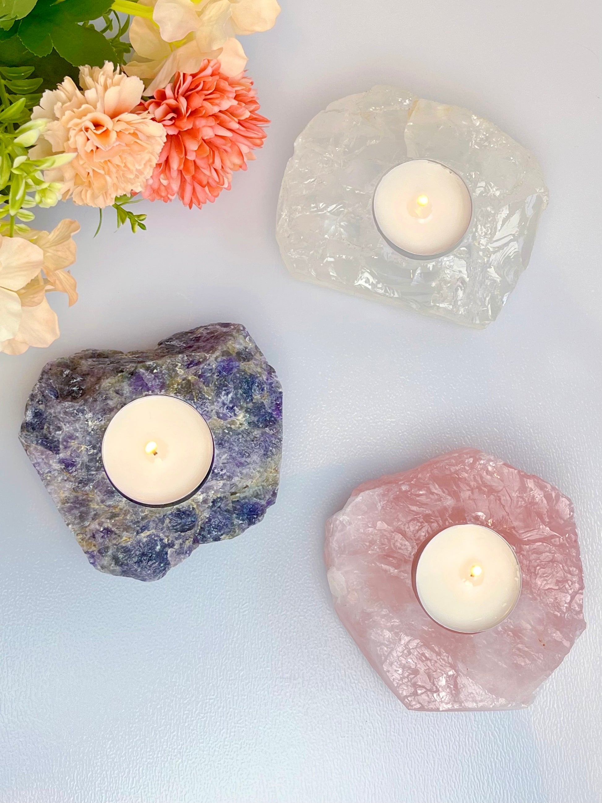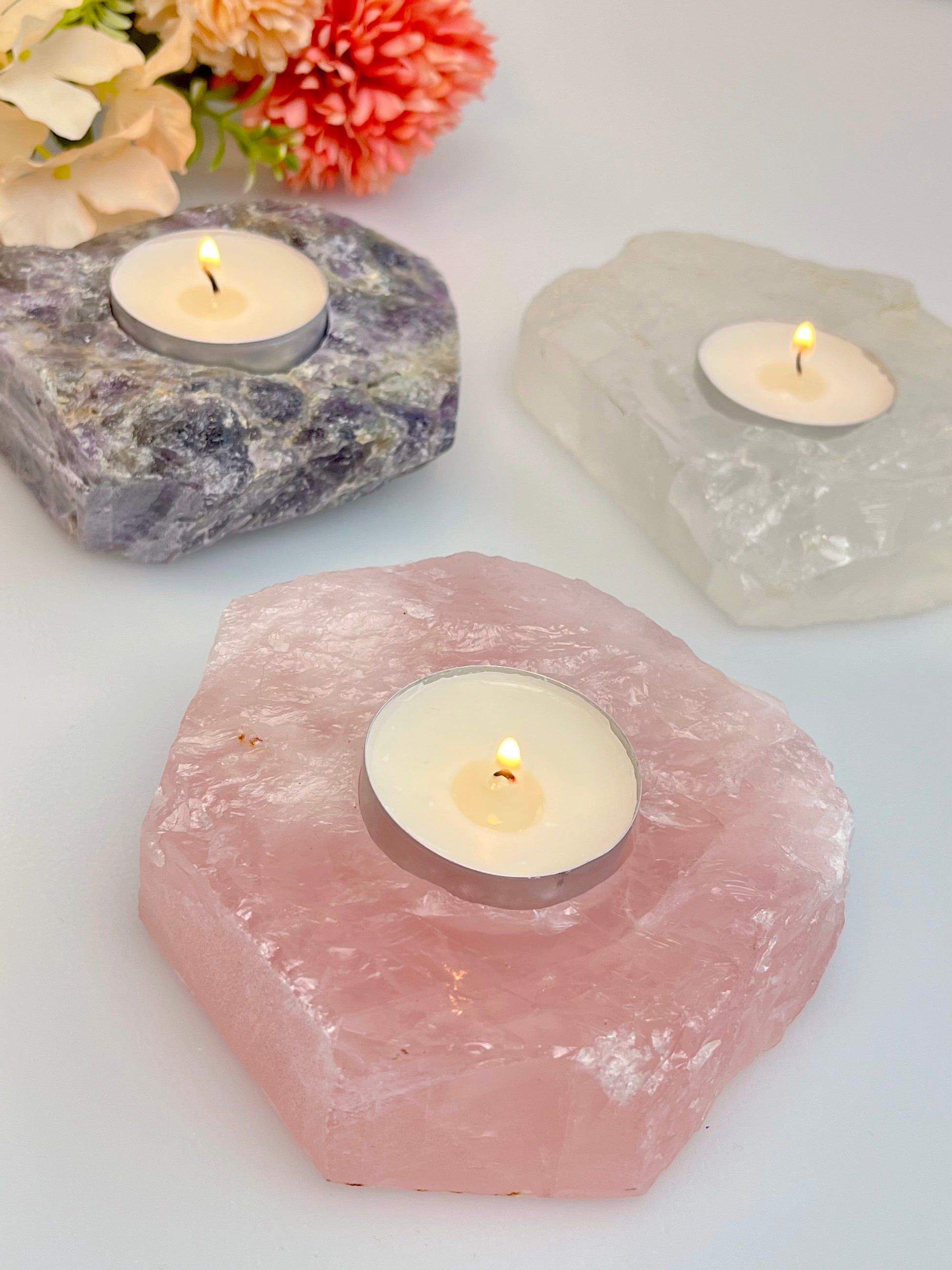 Rosenkvarts telysholder