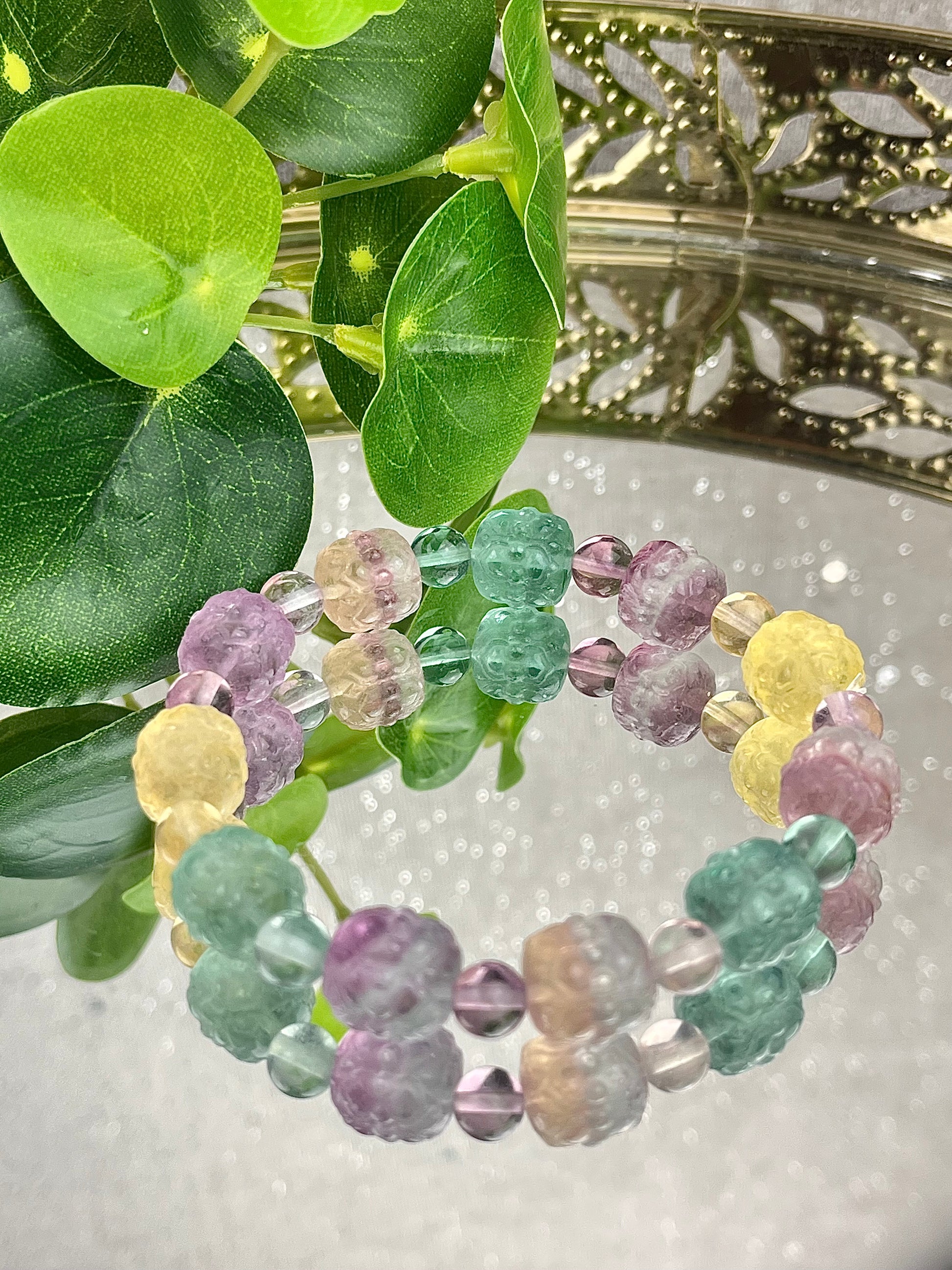 Utskåret fluorittarmbånd 11mm+